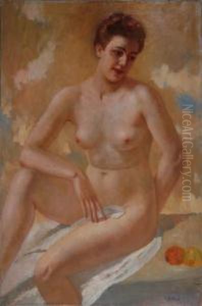 "nudo Femminile Con Arance" Olio Su Tela Firmato In Basso A Destra