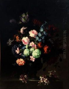 Bouquet De Fleurs Sur Un Entablement Oil Painting by Mario Nuzzi Mario Dei Fiori