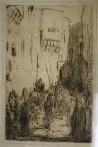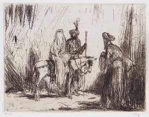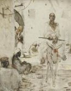 An Arab Horseman Accosted By Figures In A Street