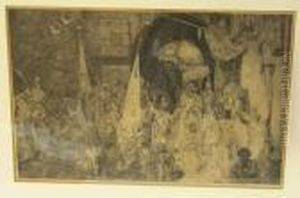 A Procession With Elephants, India