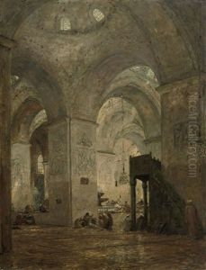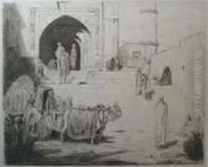Oxencart And Figures By A Temple Entrance