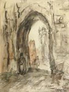 Figures And A Horse Under A Gateway, India