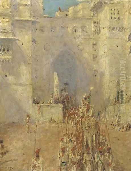 Optocht met olifanten a colourful procession in Udeipur, India Oil Painting - Marius Bauer