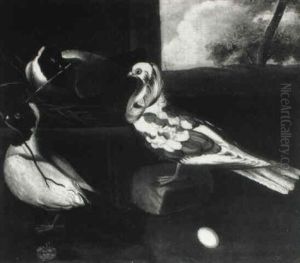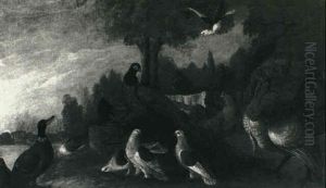 A Peacock, A Cockeral, Hens And Pigeons In A Wooded Clearing (+ 2 Others; 3 Works)