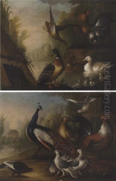 Ducks And Chickens By A River Oil Painting by Marmaduke Cradock