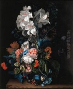 Bring the timeless beauty of Marten Nellius's Plums, An Orange, A Cabbage White Butterfly And Flowers In A Glassvase On A Stone Ledge into your home with a handmade oil painting reproduction. Carefully recreated on canvas by skilled artists using traditional techniques, this piece captures the delicate brushwork, subtle light, and vibrant color of the original masterpiece. With museum-level quality and rich texture, it brings elegance and artistic depth to any space. Enjoy free shipping and make this masterpiece a part of your personal collection.