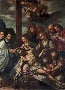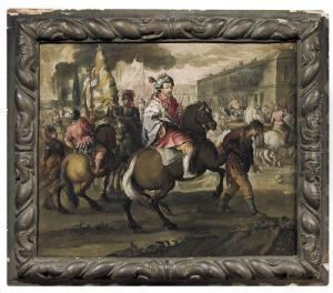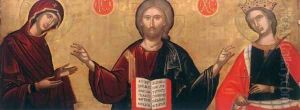 The Madonna and Child enthroned, adored by Saint Lawrence and Saint Martha