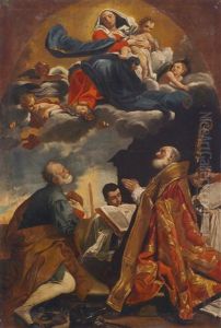 The Madonna And Child Enthroned With Saints Dominic And Catherine Of Siena And Angels