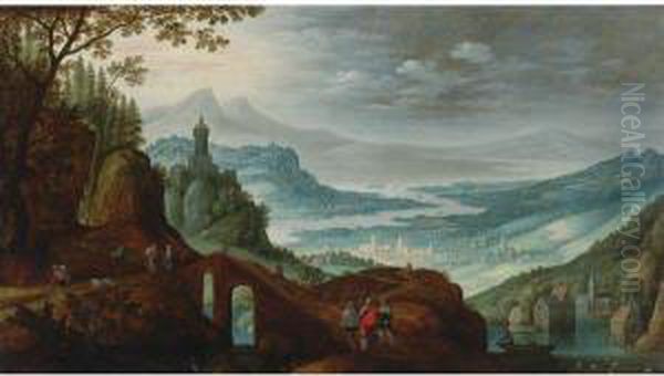Extensive River Landscape With Christ On The Road To Emmaus