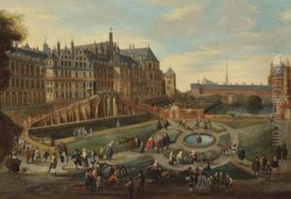 A View Of The Royal Court At Brussels With Figures Conversing In The Palace Garden