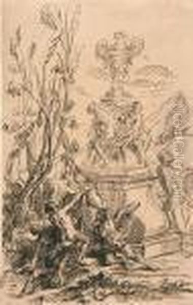 Drei Figuren Mit Steinvase Und Pansherme.
