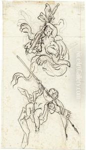 Zwei Schwebende Putten Mit Kriegstrophaen