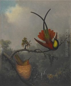 Still Life With Orchid And Pair Of Hummingbirds