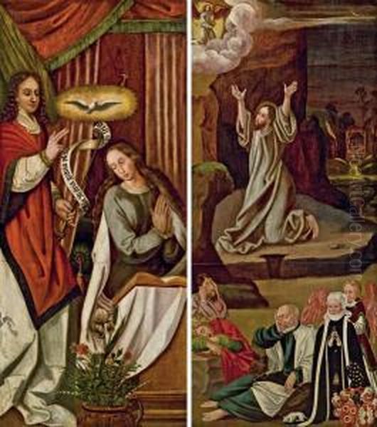 Altartafel Beidseitig Bemalt: Verkundigungsszene Mit Blumenstillleben; Christus Am Olberg Mit Stifterbildnis Und Stifterwappen (siehe Detail)