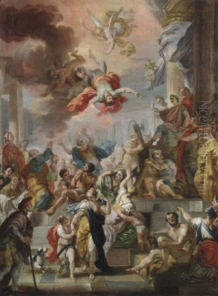 Sturz Des Magiers Simon Magus. Der Haretiker Sturzt Kopfuber Aus Den Wolken Herab