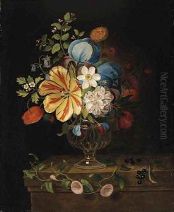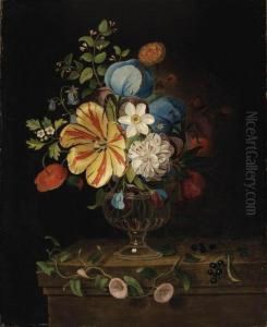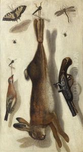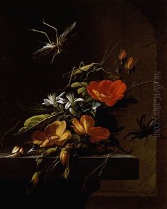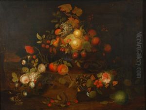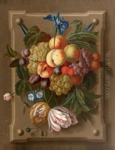 A Trompe L'oeil Of Swags Of Fruit And Flowers Pinned To A White Wall With Moths And Other Insects