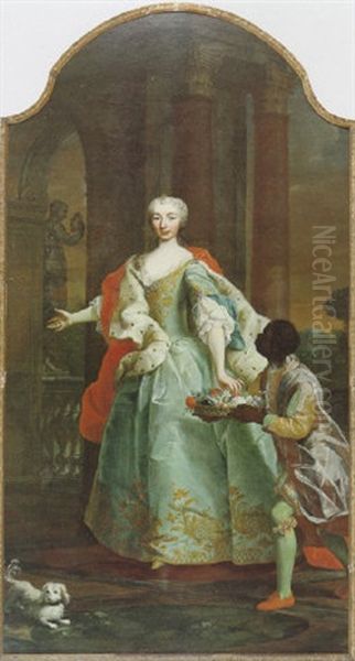 Ganzfigurenbildnis Der Furstin Elisabeth Esterhazy De Galantha Mit Einem Mohrenknaben, Der Ihr Einen Blumenkorb Reicht Und Einem Hundchen