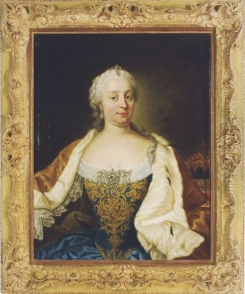 Portrait Of Maria Theresa, Archduchess Of Austria Wearing A Blue Satin Dress With An Ermine Cloak