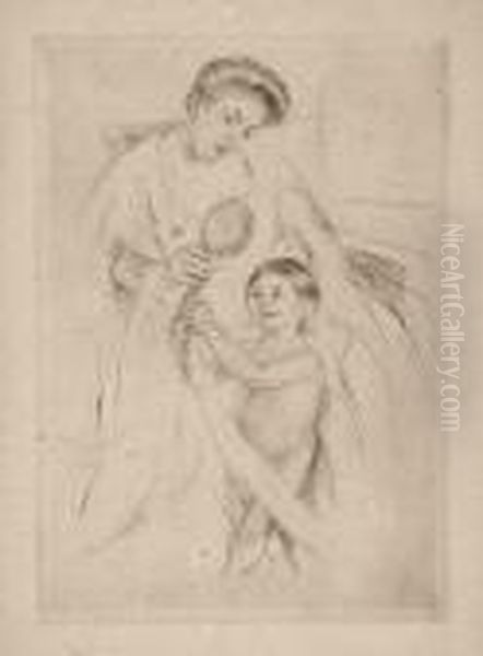 Looking Into The Hand Mirror (no. 3) Oil Painting - Mary Cassatt