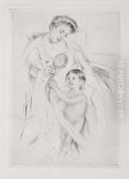 Looking Into The Hand Mirror (no. 3) Oil Painting - Mary Cassatt