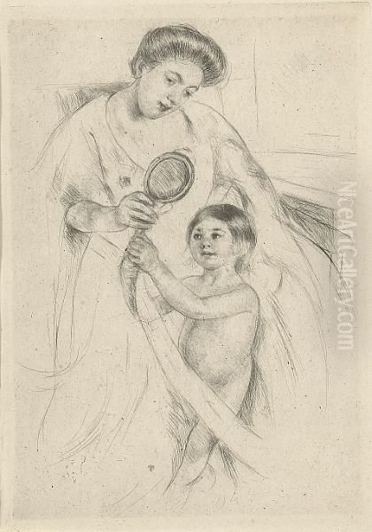Looking Into The Hand-mirror (no. 3) Oil Painting - Mary Cassatt