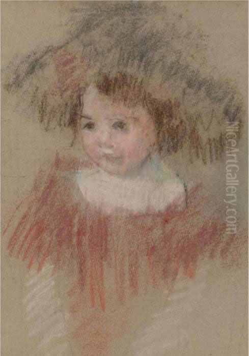 Margot In A Big Hat (fillette, Corsage Rouge) Oil Painting - Mary Cassatt