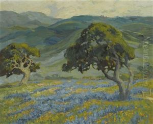 Californian Carmel Valley Viewwith Blooming Hydrangeas