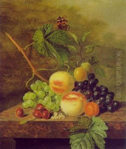A Still-life Study Of Strawberries, Cherries And A Peach In A Hedgerow