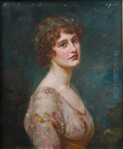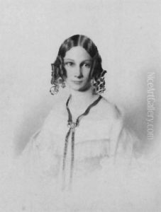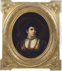 Portrait Of A Lady Wearing A White Dress And Blue Shawl