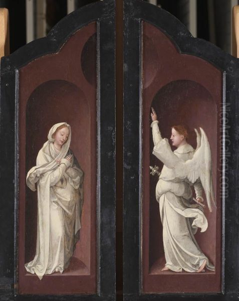 Bring the timeless beauty of Master of the Antwerp Adoration's Twee retabelluiken met Presentatie in de tempel en Aanbidding van de herders (binnenzijde) en Annunciatie (buitenzijde) into your home with a handmade oil painting reproduction. Carefully recreated on canvas by skilled artists using traditional techniques, this piece captures the delicate brushwork, subtle light, and vibrant color of the original masterpiece. With museum-level quality and rich texture, it brings elegance and artistic depth to any space. Enjoy free shipping and make this masterpiece a part of your personal collection.