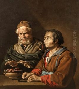 Couple De Vieillards Se Chauffant Pres D"un Brasero