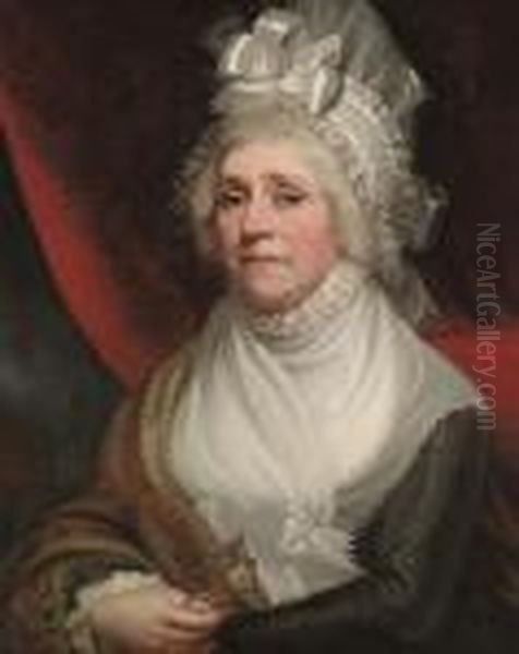 Portrait Of A Lady, Half-length, In A Black Dress With A Brocadeshawl And A Mob Cap, A Pair Of Spectacles In Her Right Hand