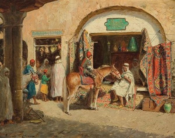 Bring the timeless beauty of Mathias (Joseph) Alten's In The Market, The Rug Seller into your home with a handmade oil painting reproduction. Carefully recreated on canvas by skilled artists using traditional techniques, this piece captures the delicate brushwork, subtle light, and vibrant color of the original masterpiece. With museum-level quality and rich texture, it brings elegance and artistic depth to any space. Enjoy free shipping and make this masterpiece a part of your personal collection.