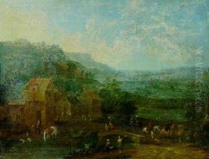 Paysage Forestier Avec Maison Fortifiee, Cours D'eau Et Personnages