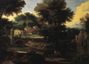 An Italianate Landscape With Travellers On A Hilly Path Near A Villa