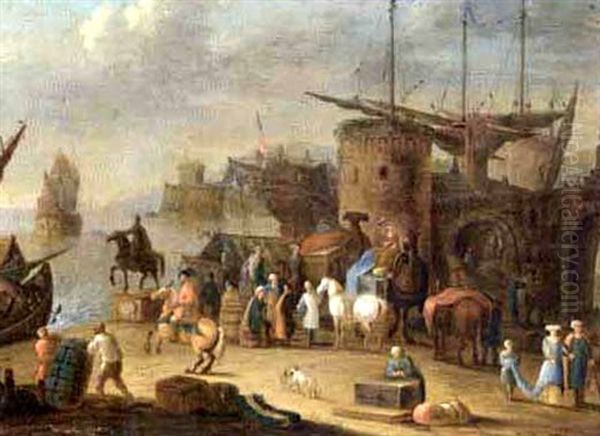A Levantine Harbour With Camels