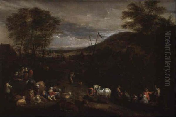 Paysage Fluvial Anime Oil Painting by Mathys Schoevaerdts