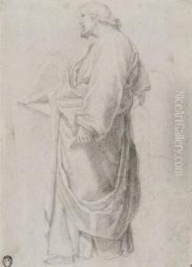 A Young Boy Seen From Behind, Holding A Sword And A Cap
