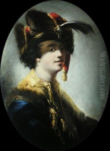 Portrait Eines Mannes In Orientalischem Gewand Und Kopfbedeckung Mit Einer Feder