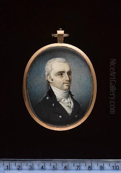 A Gentleman, Wearing Black Coat, White Spotted Waistcoat, Frilled Chemise And White Stock, His Hair Powdered.