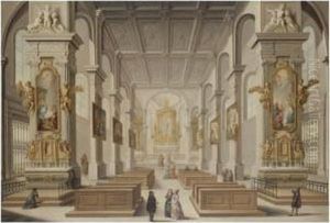 The Interior Of A Cathedral With Figures Conversing In The Foreground