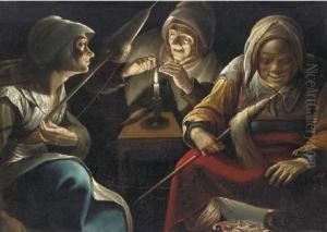 A Nocturnal Scene With A Man Holding A Candle, Pointing To A Crab On A Table