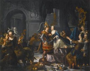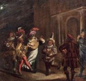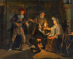 A Candle-lit Interior With A Harlequin Presented To A Lavishly Dressed Woman At Her Dressing Table