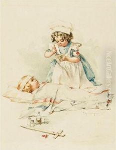 Maud Humphrey's illustrations were characterized by their delicate and refined style, often depicting women and children in idyllic settings. This was a popular aesthetic of the time, reflecting the innocence and idealized vision of childhood. She worked with various mediums, including watercolor, and her illustrations were used for children's books, magazines, and commercial advertisements. Humphrey also created a series of watercolor paintings called 'Maud Humphrey Babies,' which were reproduced as prints and became quite popular, adding to her reputation as a leading illustrator of children’s themes.