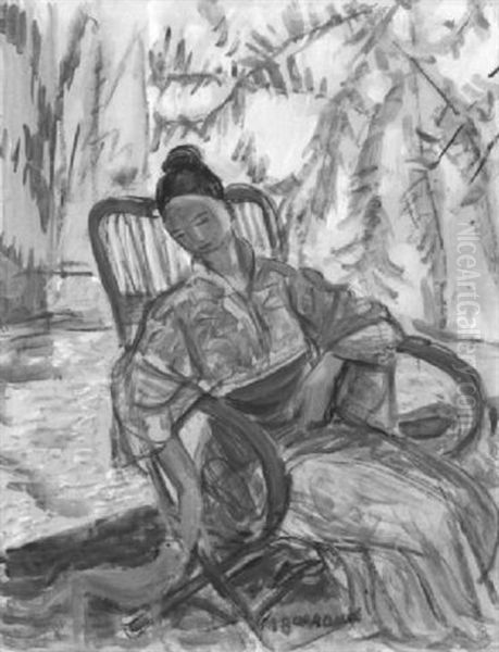 Dame Au Chat Blanc Oil Painting by Maurice Barraud
