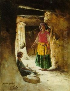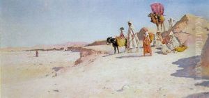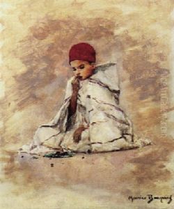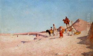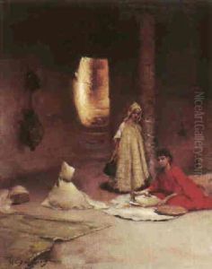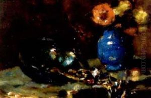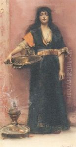 A Vase Of Peacock Feathers, Assorted Swords, A Pistol, A Saddle, And Other Orientalist Objects On A Table