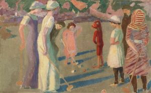 Les Enfants Jouant Dans La Foret, Etude En Rose Et Jaune