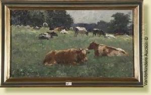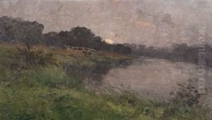 A Peasant Woman With Her Cattle In An Evening Landscape