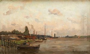 Haleur Et Ses Chevaux Pres De La Peniche