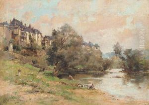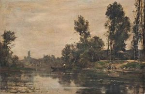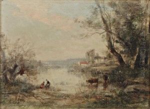 Small River Landscape With Figures